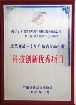 改革开放三十年广东食品行业科技创新优秀项目奖