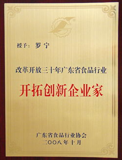 改革开放三十年广东省食品行业开拓创新企业家