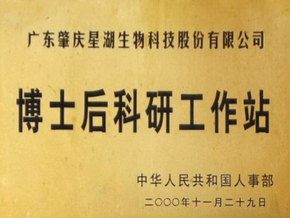 广东肇庆星湖生物科技有限公司于2000年11月经国家人事部批准 ,同意设立博士后科研工作站并于2001年4月正式挂牌运作至今。