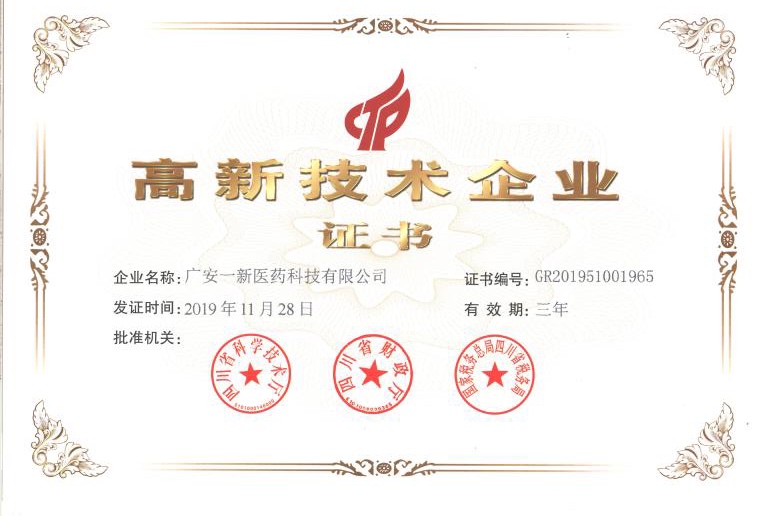 日前,四川久凌制药科技有限公司及子公司广安一新医药科技有限公司凭借专业的研发队伍、雄厚的技术实力、持续的创新能力、科学的企业管理,被顺利认定为国家级高新技术企业,获得“高新技术企业证书”。高新技术企业认定是公司深化管理的重要突破,是对公司技术创新能力和创新成果的充分肯定,对于提升企业整体形象和企业竞争力,推动企业高质量发展有着重要意义。