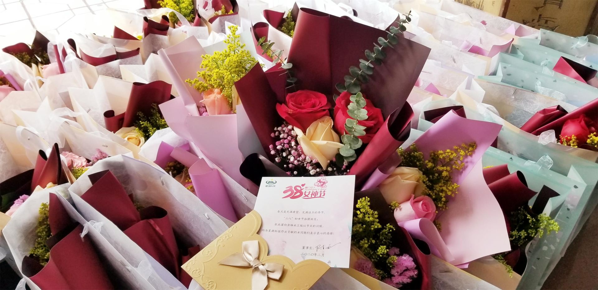 在万物复苏、春暖花开的季节,在全国疫情防控工作取得阶段性成效的特殊时期,2020年“三八”国际劳动妇女节也如约而至。在这特别的日子,公司党委书记、董事长兼总经理陈武为公司的每一位女工送上了节日贺卡,公司工会还为她们送上鲜花和精美的小礼品,感谢全体女工为公司生产经营、劳动竞赛、关爱帮扶、抗击疫情等方面所付出的辛勤劳动和积极贡献。女工们衷心感谢公司的关怀,并表示今后继续发挥“半边天”作用,以更饱满的热情投入到工作中去。