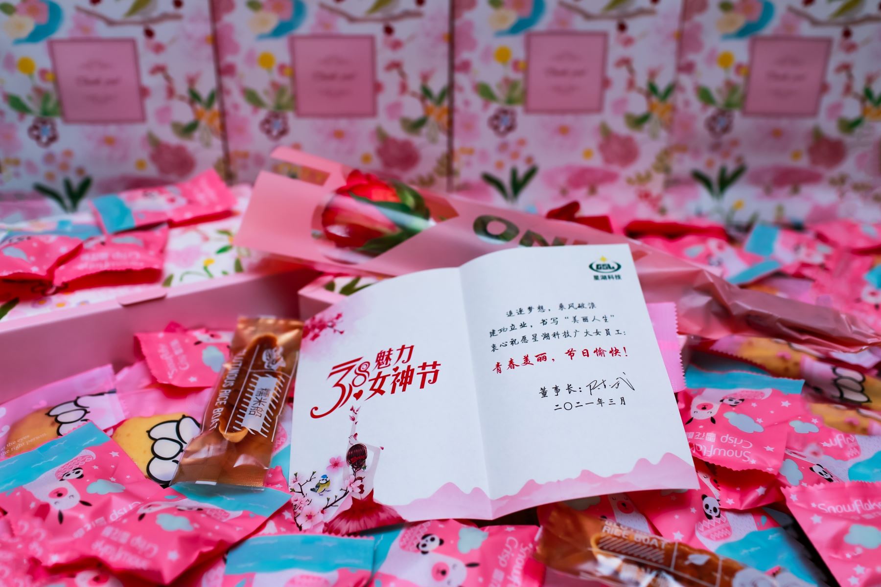 春意盎然、万物生长的三月,我们迎来了第111个“三八”国际劳动妇女节。3月8日,公司工会女工委为600多名女员工送上了节日贺卡和小礼品,党委书记、董事长陈武为星湖科技的女神们送上了节日贺卡,祝福女神们节日快乐!鼓励女工们继续奋斗、追逐梦想,建功立业新时代!女工们在收到节日礼物时满怀喜悦,感谢公司的关怀,纷纷表示要以巾帼不让须眉的豪情,以更加饱满的精神投入工作,努力发挥“半边天”的重要作用。