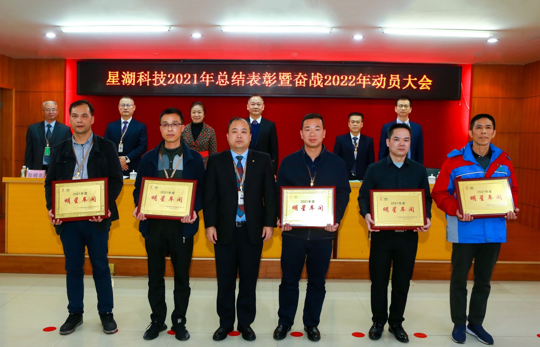 会议表彰了公司2021年度优秀团队、明星车间、先进班组和优秀员工。