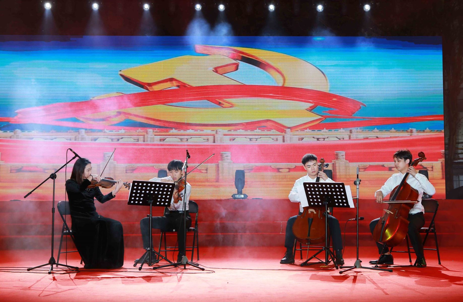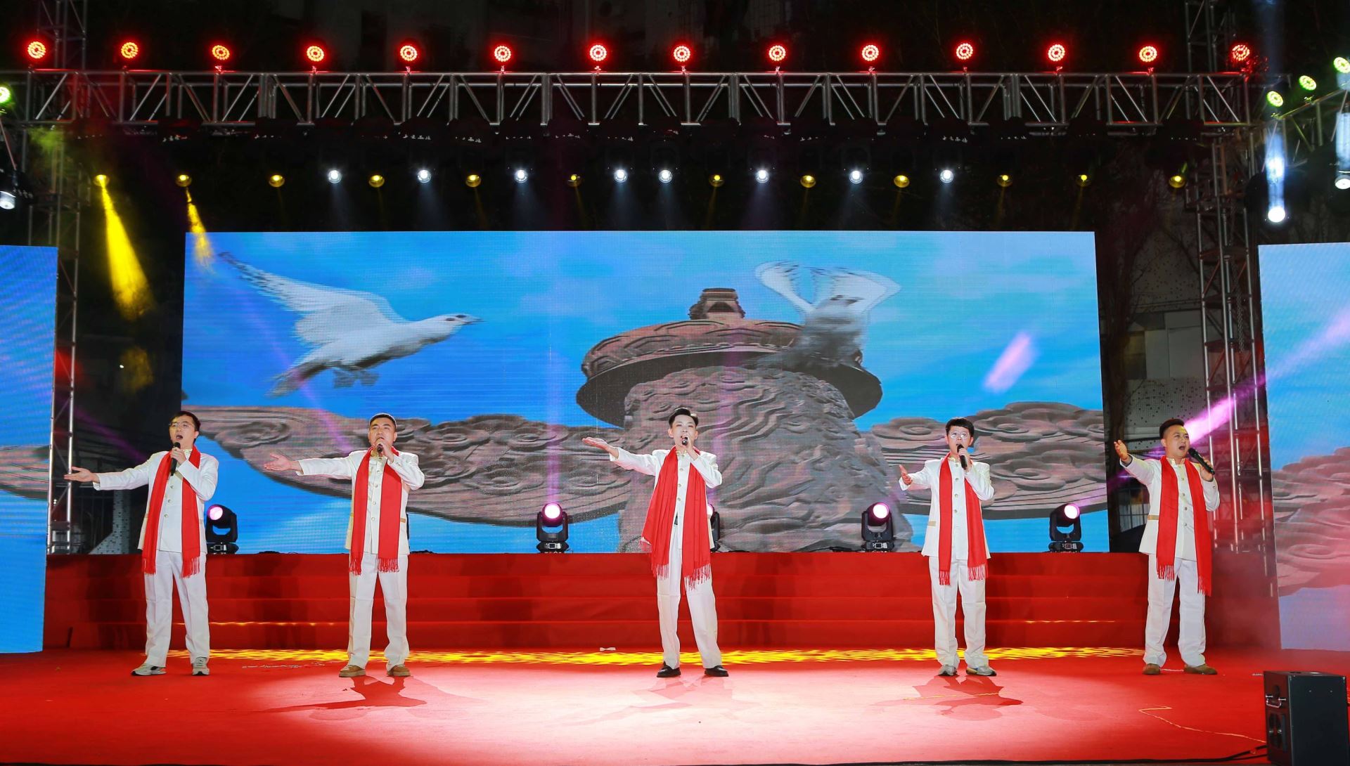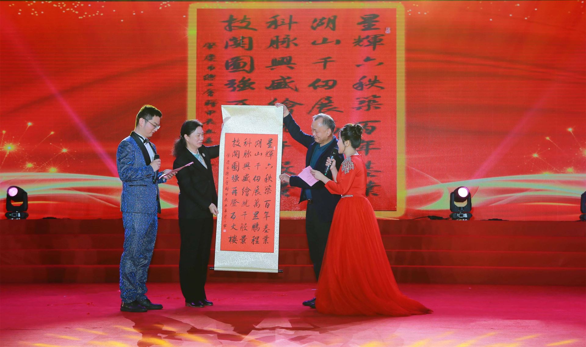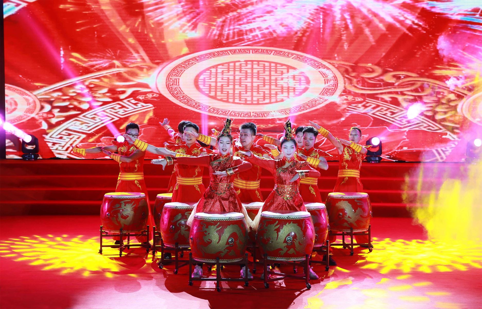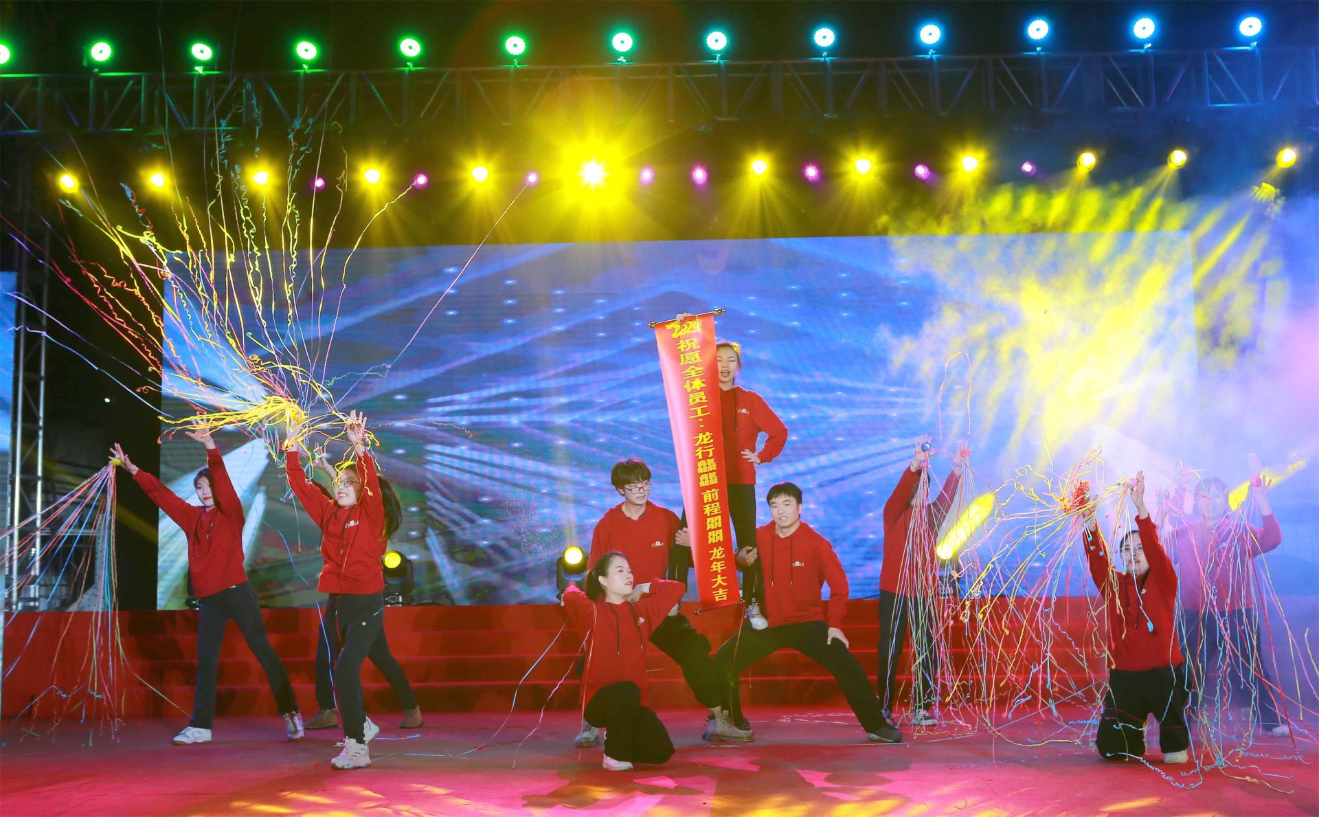 伴随着雄壮激昂的阵阵鼓声,联欢晚会正式开幕。公司青年员工开场舞蹈《鼓舞飞扬·盛世龙腾 》激动人心,舞出全体星湖科技人奋进新征程、再创新辉煌的无限激情;市职工文体协会和工会排舞志愿者队表演的蒙古风情歌伴舞《画你》音乐悠扬、舞韵悠长,带给现场观众唯美的盛宴;公司团员青年带来的现代舞蹈《最亲的人》+《科目三》动感十足、活力四射;公司太极拳爱好者及员工子女带来的太极拳表演《八法五步》整齐划一、行云流水,让在场员工感受到中华传统运动的魅力;生物工程基地男团F5联唱的歌曲《大中国》,唱出了祖国河山的多姿多彩,抒发了星湖儿女爱党爱国爱家的豪迈情怀……10个节目精彩纷呈,引来了现场观众阵阵热烈的欢呼声和掌声。在公司领导与员工队员的大合唱《在希望的田野上》欢快歌声中,联欢晚
