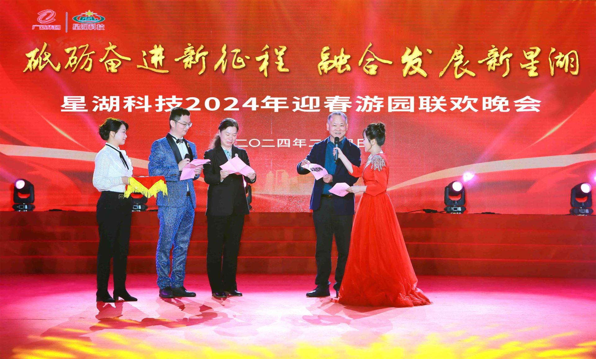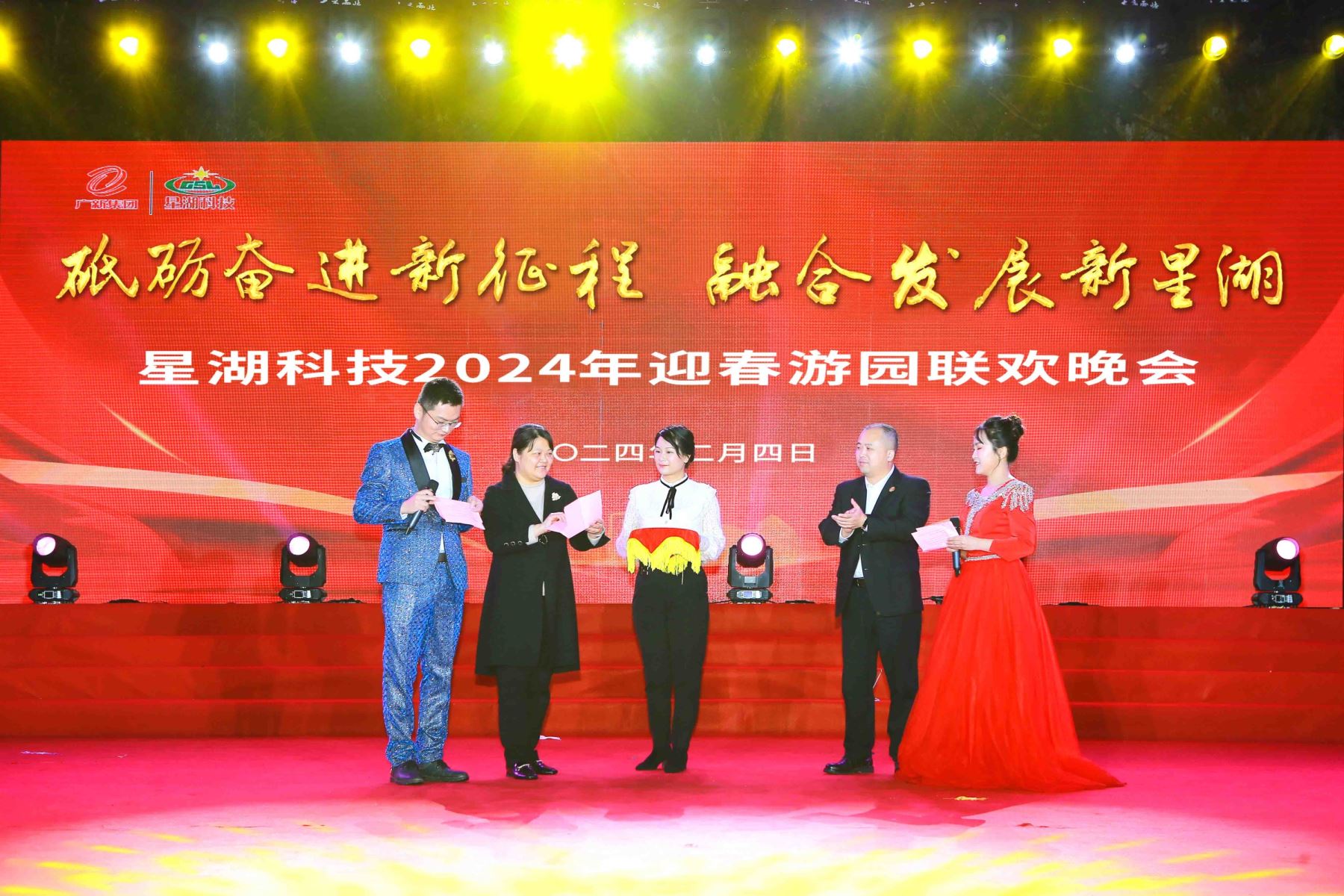 在2024年新春佳节来临之际,为丰富广大员工的业余文化生活,营造热烈、喜庆、祥和的节日气氛,增强企业凝聚力与员工归属感,2月4日,星湖科技工会在生化制药厂厂区举办以“砥砺奋进新征程,融合发展新星湖”为主题的迎春游园联欢晚会。肇庆市总工会党组成员、副主席罗军,星湖科技党委书记陈武,党委副书记、总经理应军,党委副书记、工会主席许荣丹,党委委员、副总经理张番平、黄励坚,党委委员、财务总监陈军来等领导,以及来自各单位、各部门的500余名员工及家属参与活动。