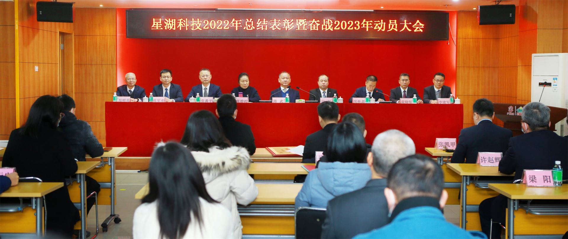 1月18日,公司召开2022年总结表彰暨奋战2023年动员大会,公司党委书记、董事长陈武,董事庞碧霞出席会议并讲话,公司党委副书记、董事、总经理应军作2022年工作总结暨2023年工作部署,公司班子成员、总助、总监、总法及本部各单位各部门副职以上管理人员、基层管理人员代表,肇东公司、久凌公司负责人,获得公司2022年度先进集体和优秀员工代表参加会议。会议由公司党委副书记吴柱鑫主持。