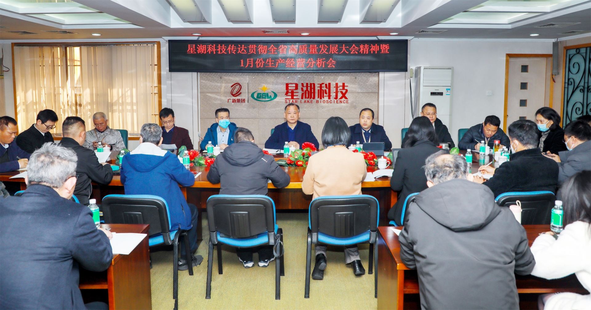1月30日,星湖科技召开传达贯彻全省高质量发展大会精神专题会议,公司党委书记、董事长陈武出席并作部署要求,公司总经理应军主持会议并介绍了作为企业代表在主会场参加大会的情况及感想,传达贯彻省委书记黄坤明的讲话和大会精神,强调狠抓今年重点工作措施落地见效。公司班子成员、总助、总监、总法及本部各部门各单位和子公司主要负责人参加会议。