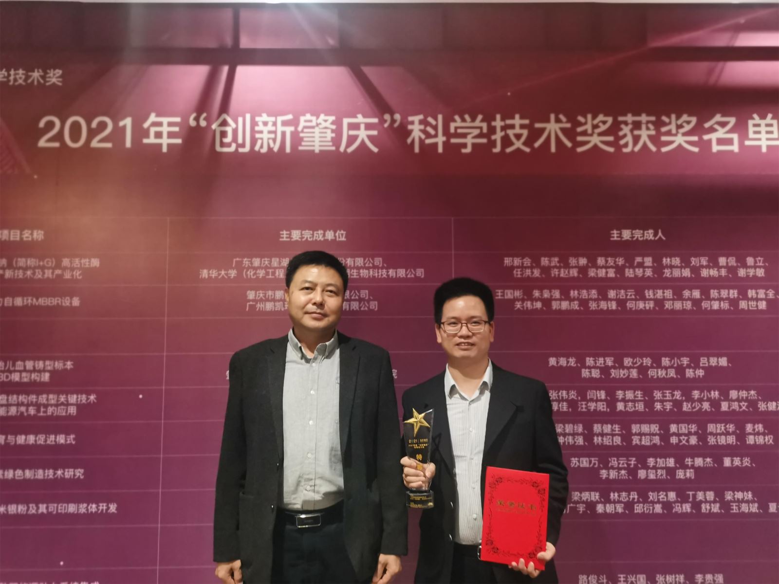 12月11日,2021年度“创新肇庆”科学技术奖颁奖仪式在肇庆市端州区福澳假日酒店举行,我司“《呈味核苷酸二钠(简称I+G)高活性酶法转化清洁生产新技术及其产业化》”项目获得本年度肇庆市科学技术奖特等奖,该项目主要完成人、公司总经理助理蔡友华代表公司领奖。