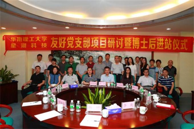 6月17日(星期六)上午,公司技术中心党支部与华南理工大学生命科学与工程学院微生物工程党支部在生物工程基地举行了共建友好党支部项目研讨暨博士后进站仪式,双方就开展共建活动方案落实、人才引进与培养以及推进项目合作落地进行了交流与探讨,促进共建工作深入开展。华南理工大学生命科学与工程学院党委书记刘应思、副院长吴振强及专家、教授,公司党委书记罗宁、党委副书记叶志超及技术中心党支部技术人员等共30多人参加研讨会。