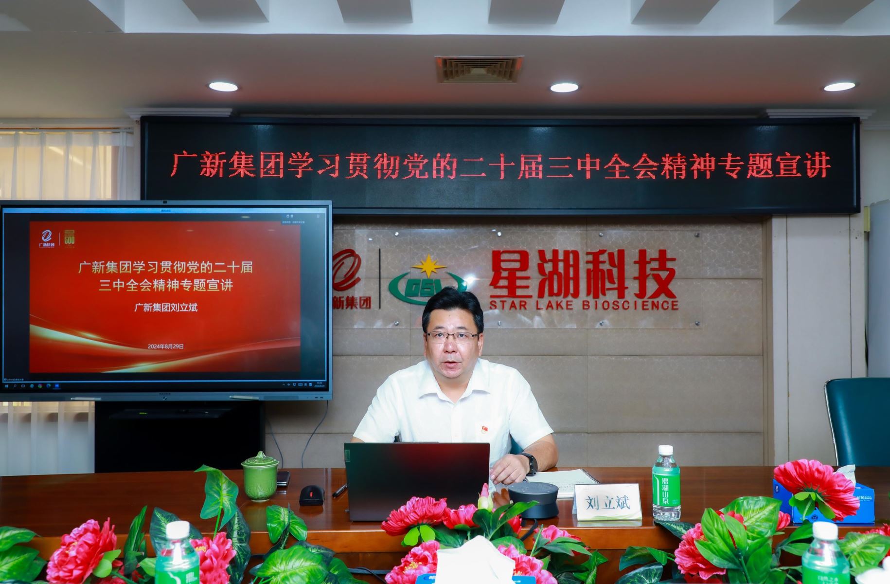 为深入学习贯彻习近平总书记在党的二十届三中全会上的重要讲话精神和全会精神,推动全会精神贯彻落实,8月29日下午,广新集团党委委员、副总经理刘立斌到星湖科技专题宣讲党的二十届三中全会精神。星湖科技领导班子、专项工作负责人、中层副职及以上管理人员,下属企业领导班子及中层管理人员共140多人参加会议,星湖科技党委书记陈武主持会议。