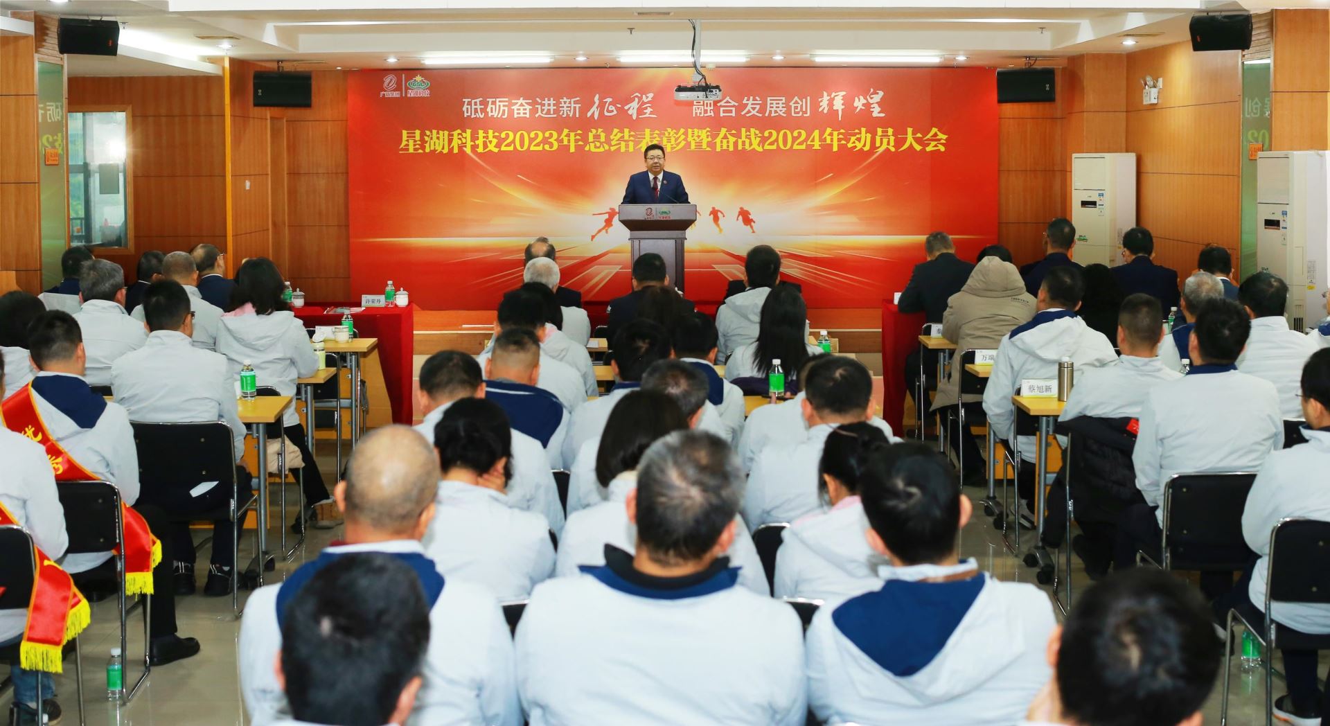 1月27日,星湖科技召开2023年总结表彰暨奋战2024年动员大会,总结经验、部署工作,表彰先进、鼓舞士气,吹响奋战2024年冲锋号。广新集团党委委员、副总经理、星湖科技董事长刘立斌出席会议并讲话,星湖科技党委书记、董事陈武宣读《关于星湖科技2023年度荣誉表彰的决定》,星湖科技党委副书记、董事、总经理应军作题为《乘势而上开新局 融合发展启新程 奋力谱写星湖伊品高质量发展新篇章》的工作报告,公司领导班子成员、专项工作负责人、董秘、总助、总监、总法及部长助理以上管理人员、2023年先进集体及优秀个人代表参加会议。公司党委副书记许荣丹主持会议。